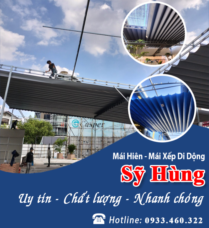 Sỹ Hùng Nhận thi công lắp ráp, thiết kế cái loại mái hiên, mái che, mái xếp,…. cho quán cà phê, căn hộ, quán ăn, công ty,… với giá cả phải chăng cạnh tranh. Quý khách chỉ cần liên hệ 0933.460.322 để được đội ngũ thi công nhanh chóng và chuyên nghiệp và tiết kiệm thời gian nhé!